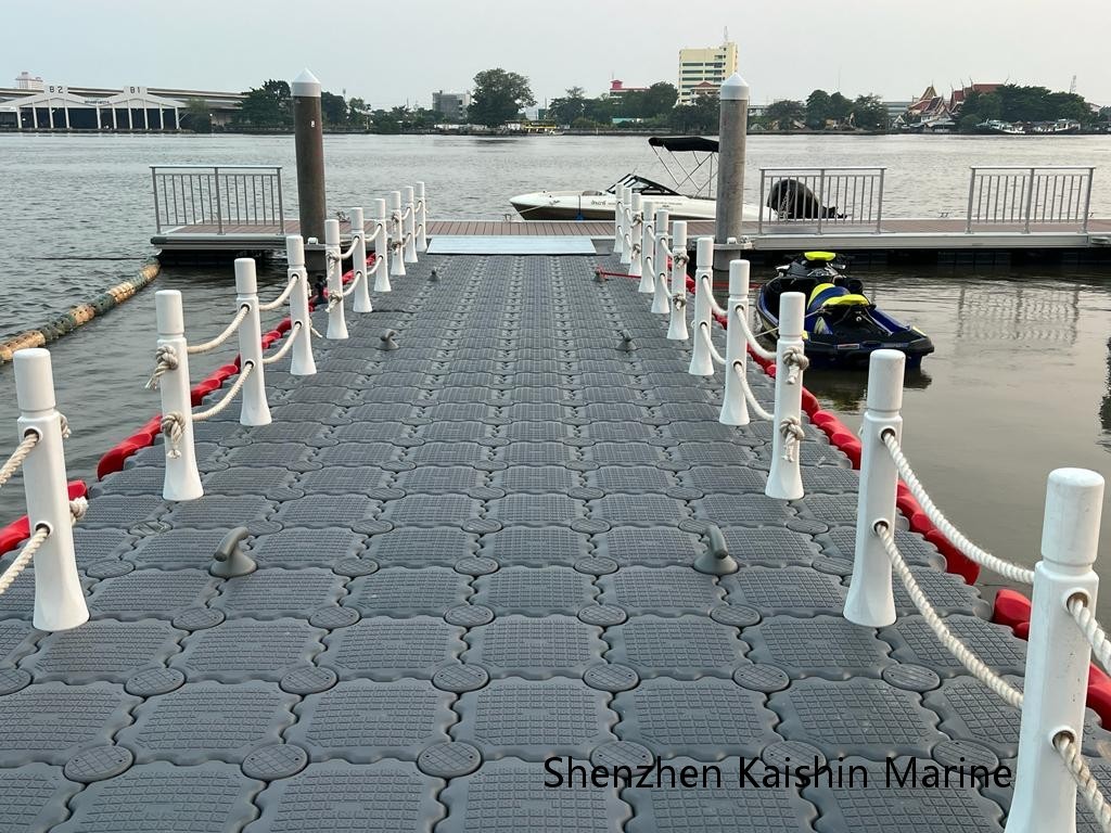 The Kaishin KS500 Modular Floating Dock is an innovative solution designed for a variety of application occasions and scenarios, providing exceptional versatility and convenience. Manufactured in Guangdong, China, and certified with CE standards, this Plastic Floating Dock offers a modular structure that is highly adaptable to different environments and user needs.